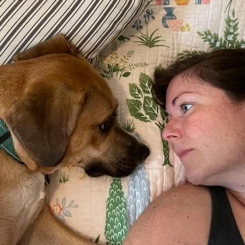 Right now, I’m supposed to be doing “life admin.” My inbox is overflowing, there are 20 cases of Girl Scout Cookies stacked in the dining room that need to be sold by next week, and I’m due to coach my kid’s sports team in an hour. Instead of replying to emails or solving cookie logistics, I’m laying down with my dog, breathing in her musky funk and gazing into her loving eyes.